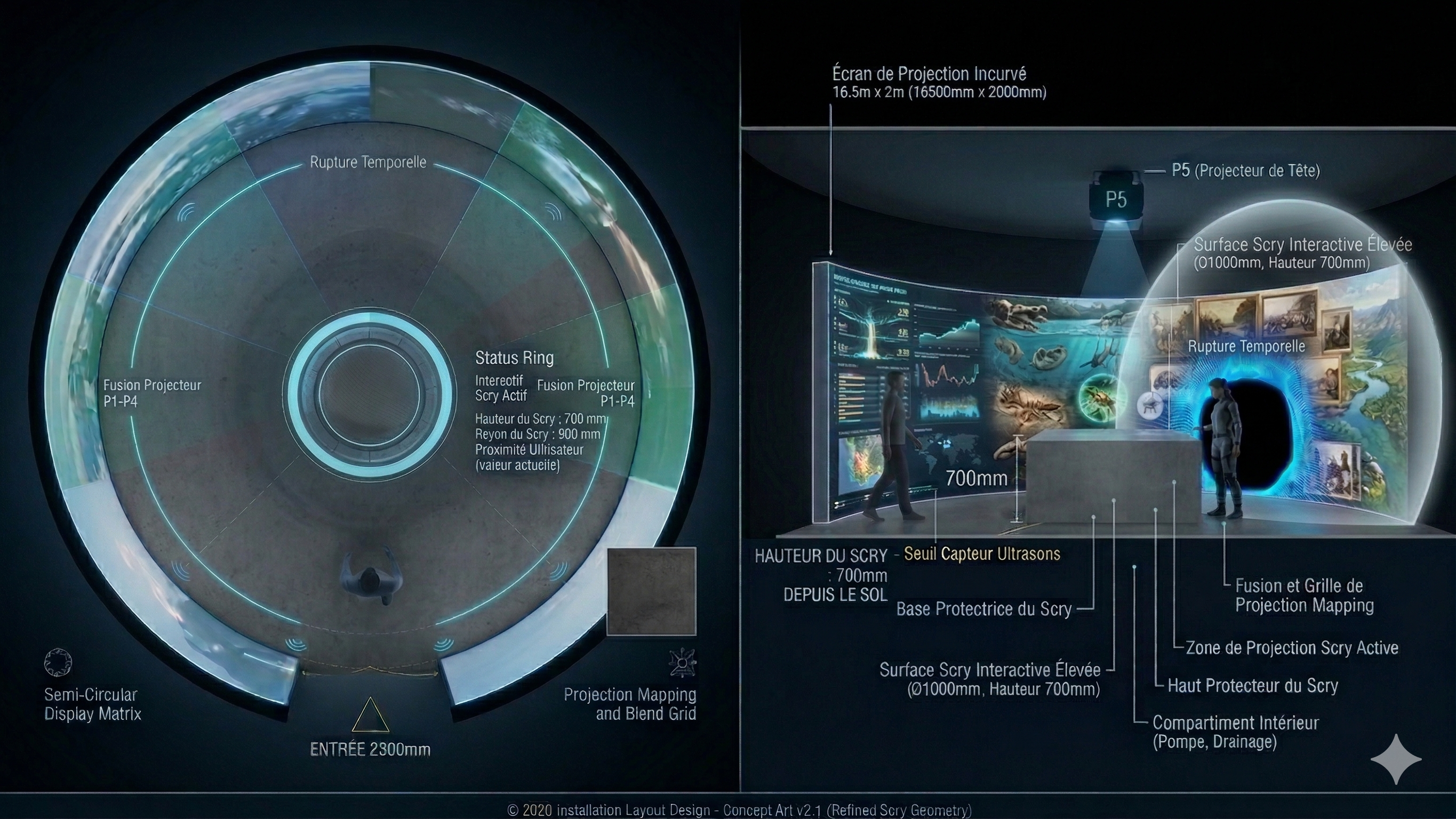 Installation immersive — projection mapping, capteurs, audio spatial